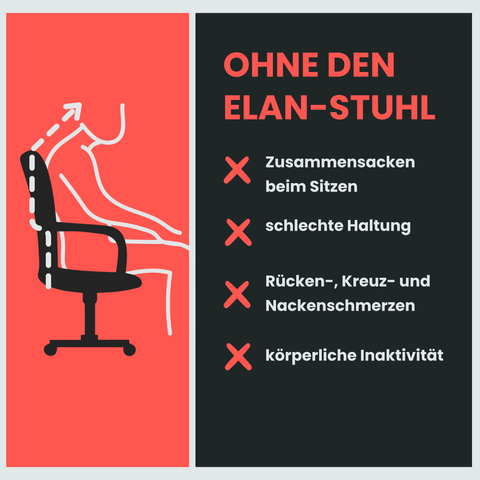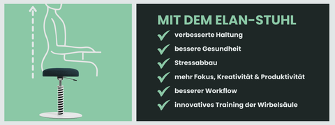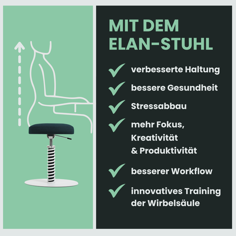 Genau deshalb haben wir Elan entwickelt – den dynamischsten Hocker der Welt, damit Du gesünder und aktiver arbeiten kannst und Rückenschmerzen sowie schlechte Haltung vermeidest. Gemeinsam vereinen wir Innovation, Design und Ergonomie – für mehr Bewegung in Deinem Alltag.